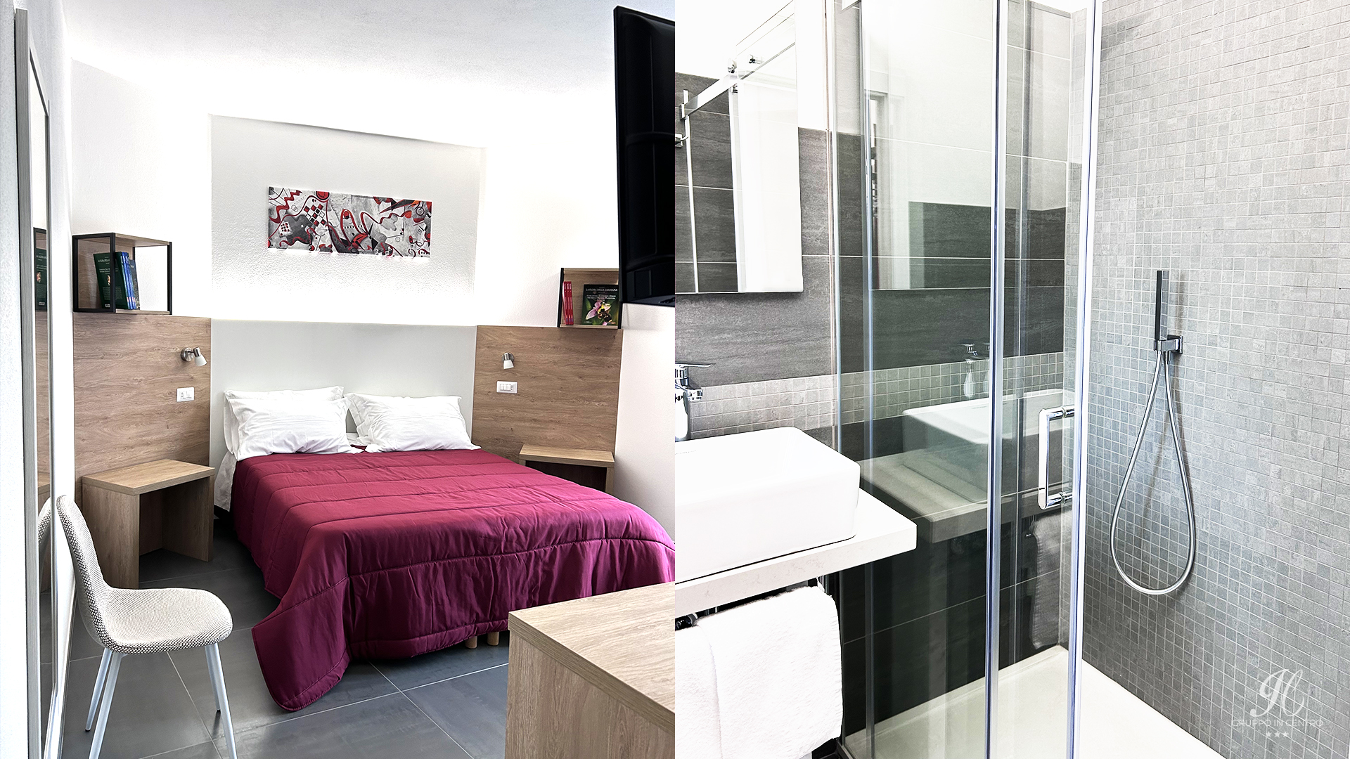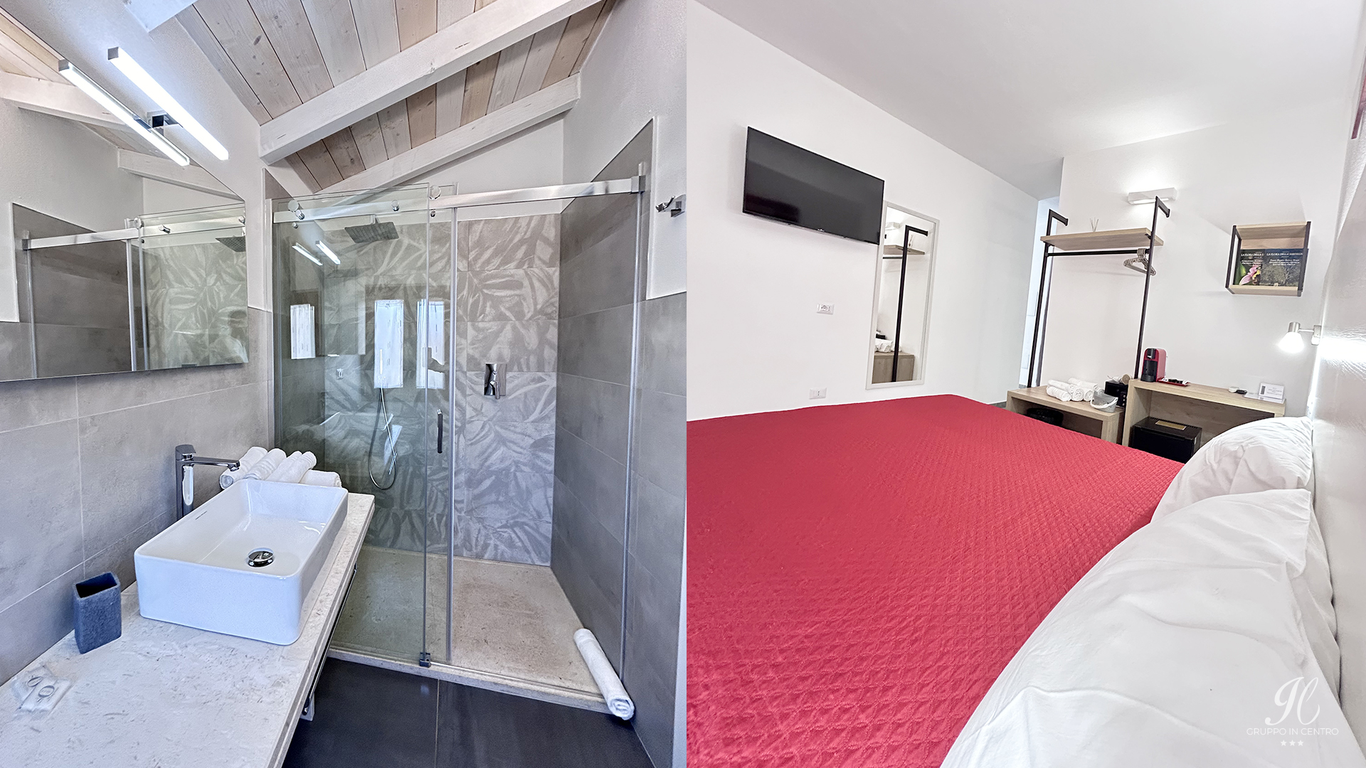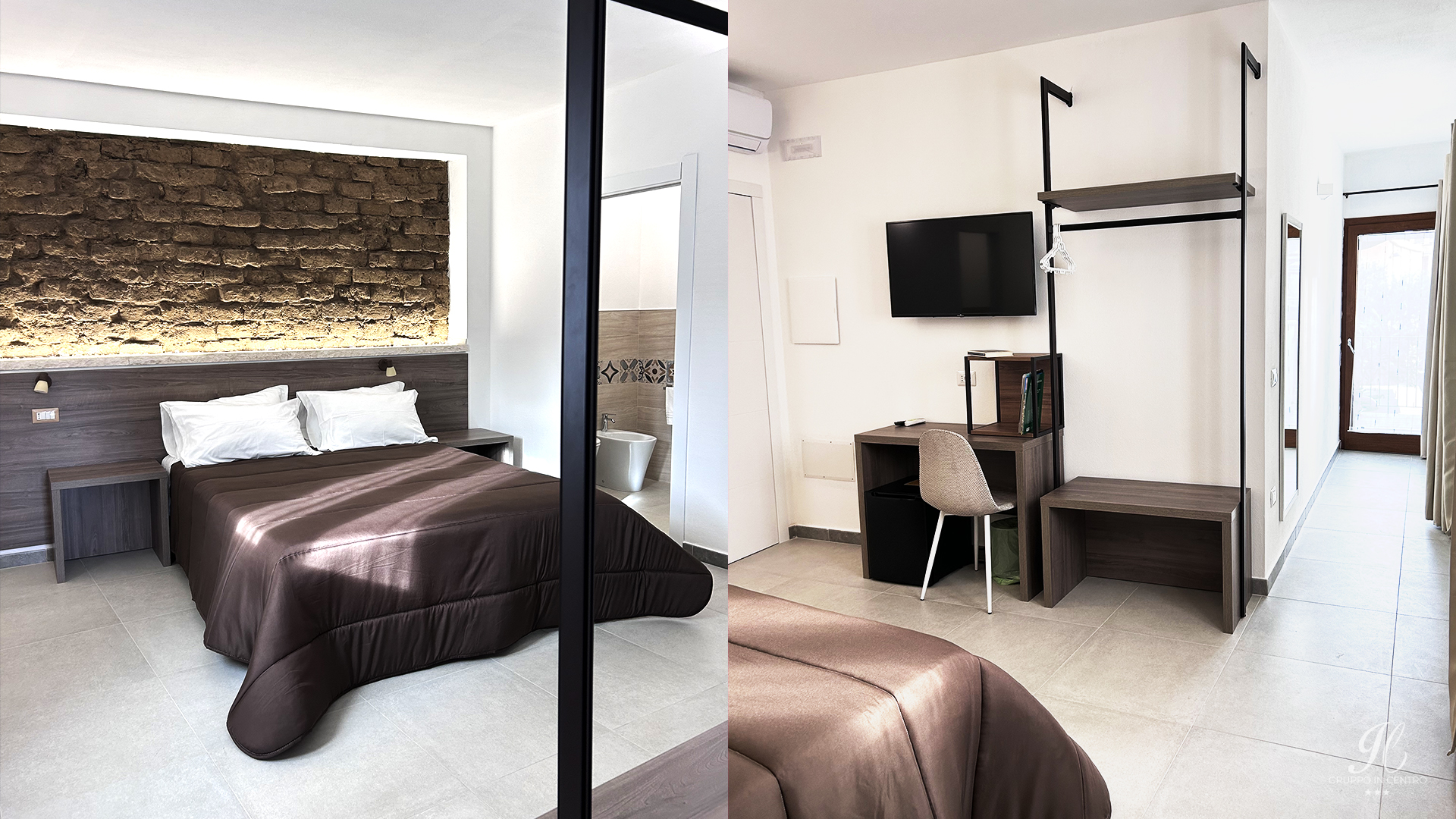 Le nostre camere sono angoli di pace: luminose, raffinate e curate in ogni particolare, progettate per offrirti un’esperienza di totale relax. Ogni camera dispone di un bagno privato dal design moderno, completo di morbidi asciugamani, asciugacapelli e un kit da bagno pensato per coccolarti. Le nostre camere Superior sono dotate di terrazze per i vostri aperitivi e momenti intimi.
