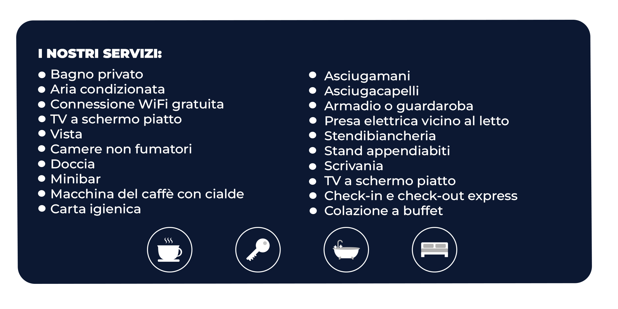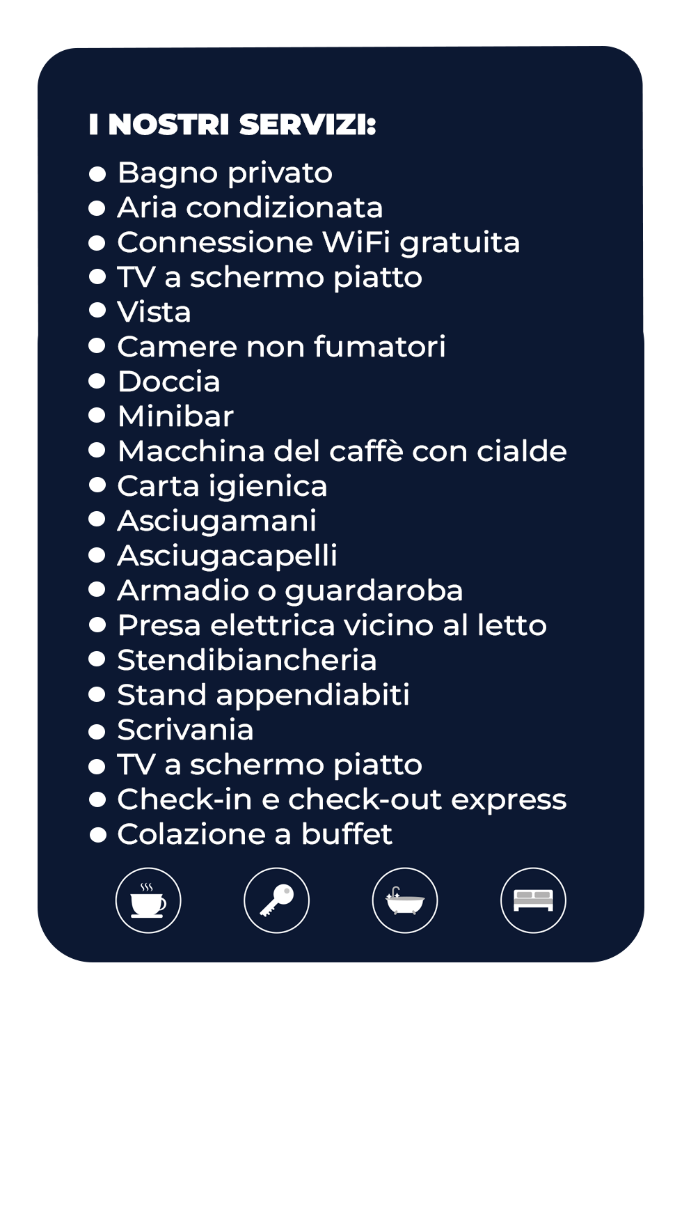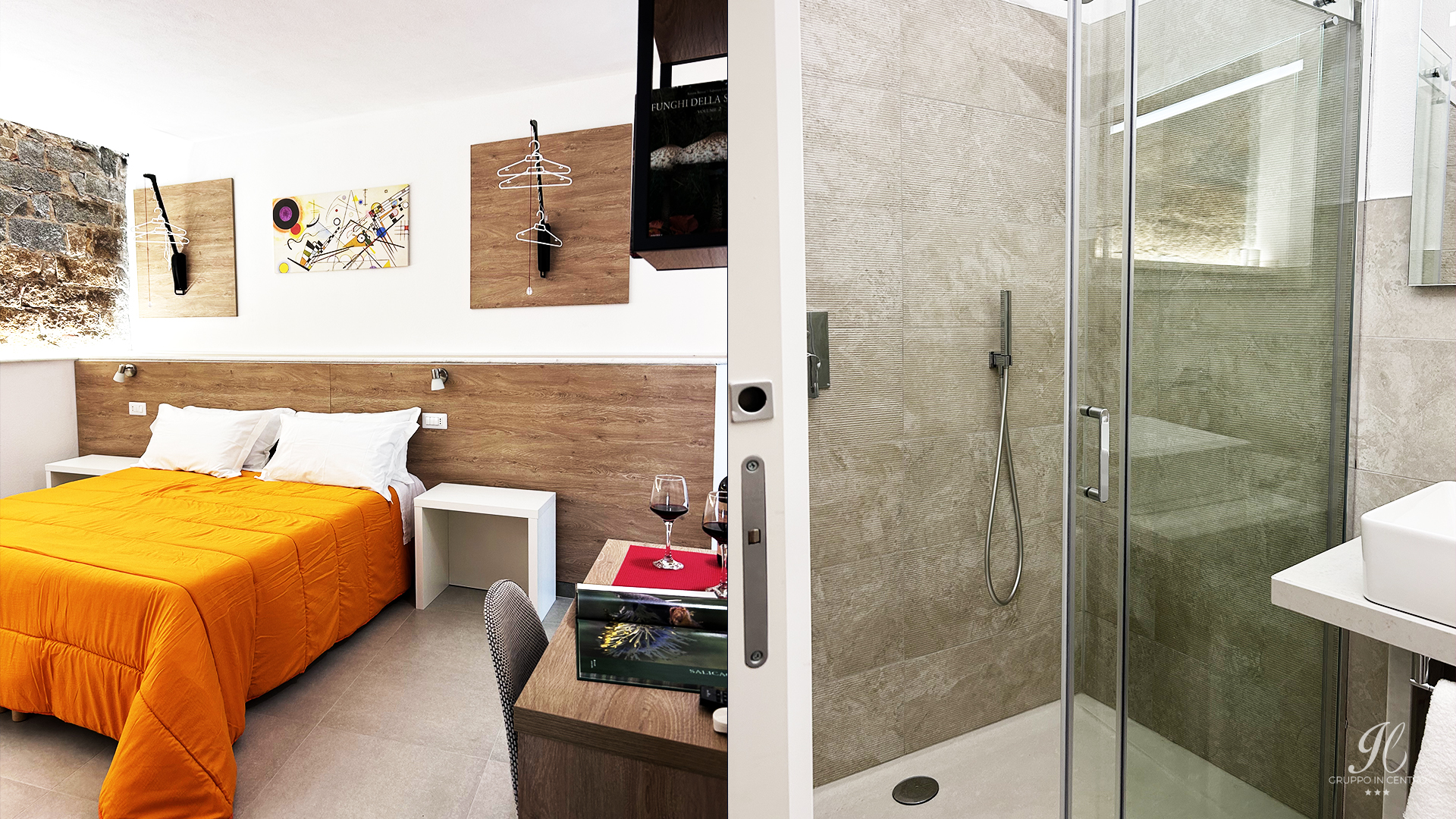 Le nostre camere sono angoli di pace: luminose, raffinate e curate in ogni particolare, progettate per offrirti un’esperienza di totale relax. Ogni camera dispone di un bagno privato dal design moderno, completo di morbidi asciugamani, asciugacapelli e un kit da bagno pensato per coccolarti. Le nostre camere Superior sono dotate di terrazze per i vostri aperitivi e momenti intimi.